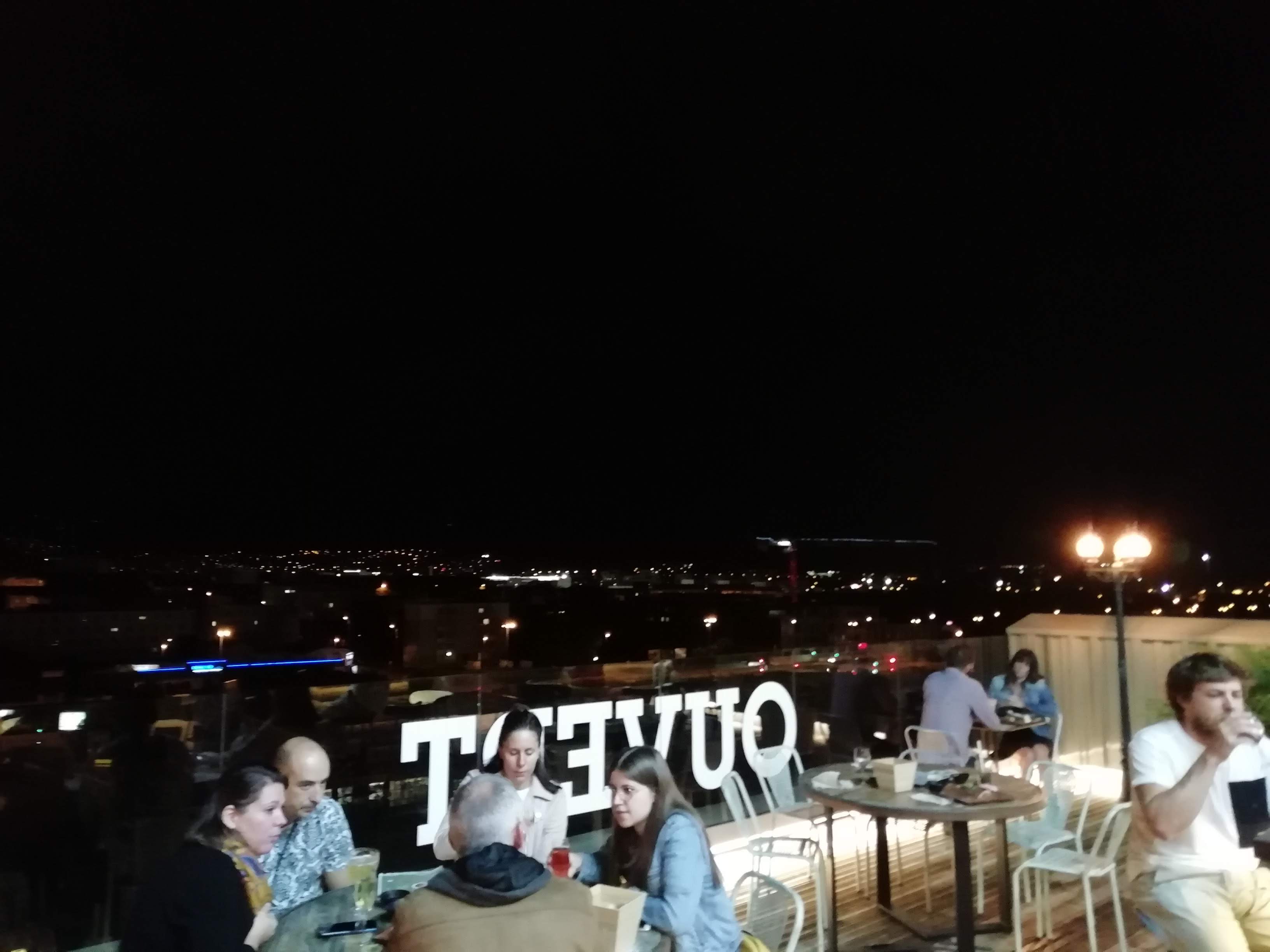 Un cadre extrêmement sympathique, on voit tout Clermont, et surtout la chaîne des Puys ! La carte est assez basique (quelques simples cocktails, peu de choix de bières, quelques vins apero et soft) mais suffisante. Niveau restauration vous trouverez quelques pizza et des planches apero. La force de ce bar, c'est le cadre. Si c'est ce que vous venez (logiquement) chercher vous serez conquis. Soyez indulgent avec le personnel, ils viennent d'ouvrir, c'est normal de ne pas connaître les numéros de table au début et d'avoir quelques rouages qui méritent encore un peu d'huile. Il y a une partie couverte, mais dans tous les cas vous serez en plein air. La Playlist était bien, lounge/house en début de soirée pour glisser doucement sur des choses plus actuelles.