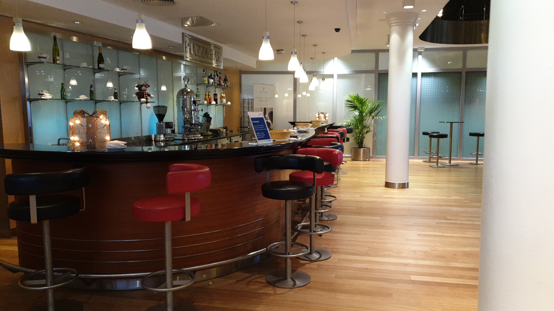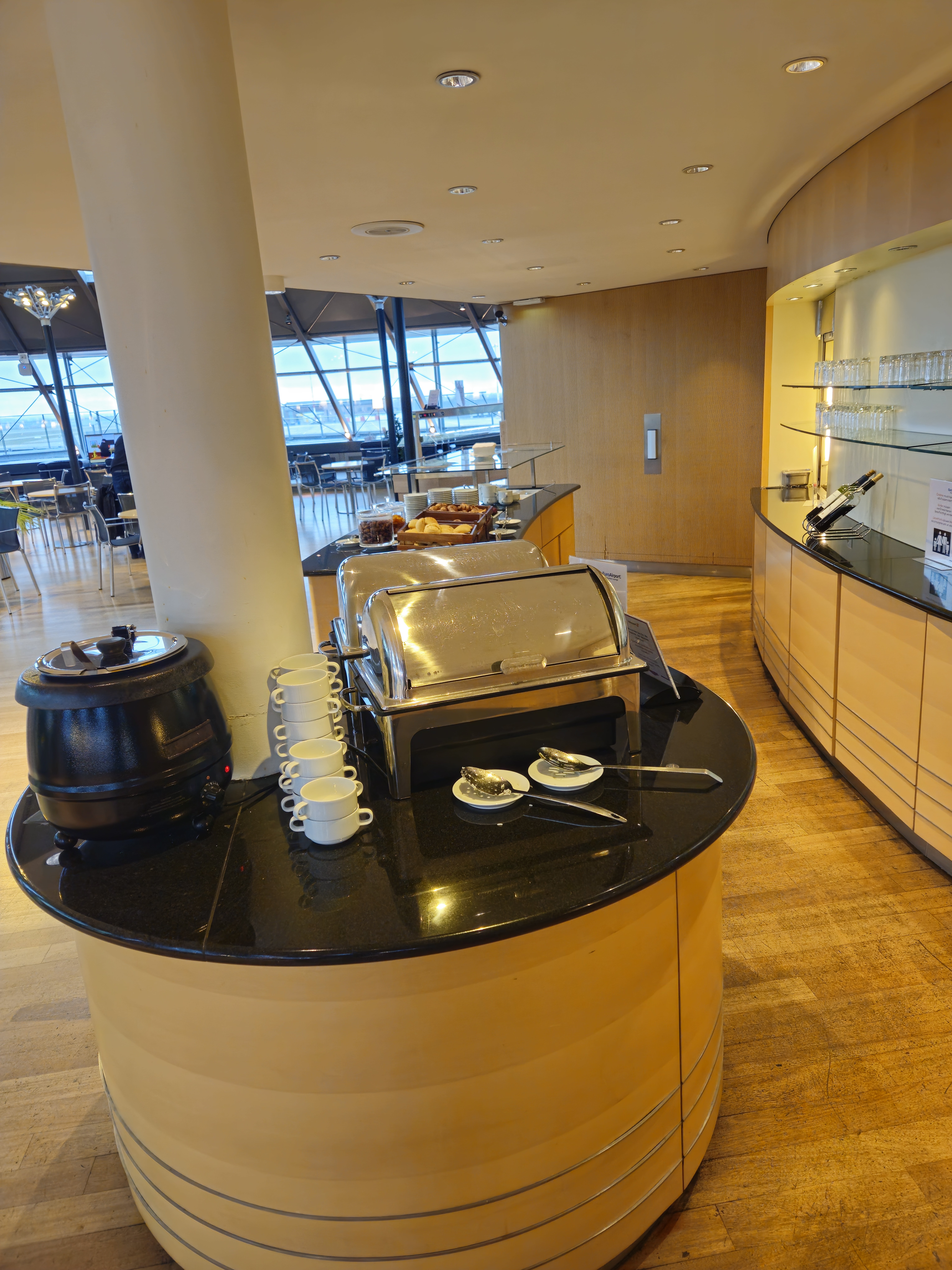Un des plus beaux salons d'Europe, qui était d'ailleurs très calme lors de ma visite à l'heure du déjeuner. Accepte entre autres *G sur les vols LH et Priority Pass. Il y a aussi une terrasse extérieure. La sélection de plats est à peu près comparable à celle d'un LH Business Lounge (pas parfait mais correct). Deux ou trois plats chauds, de la charcuterie et de la salade et une belle glacière.