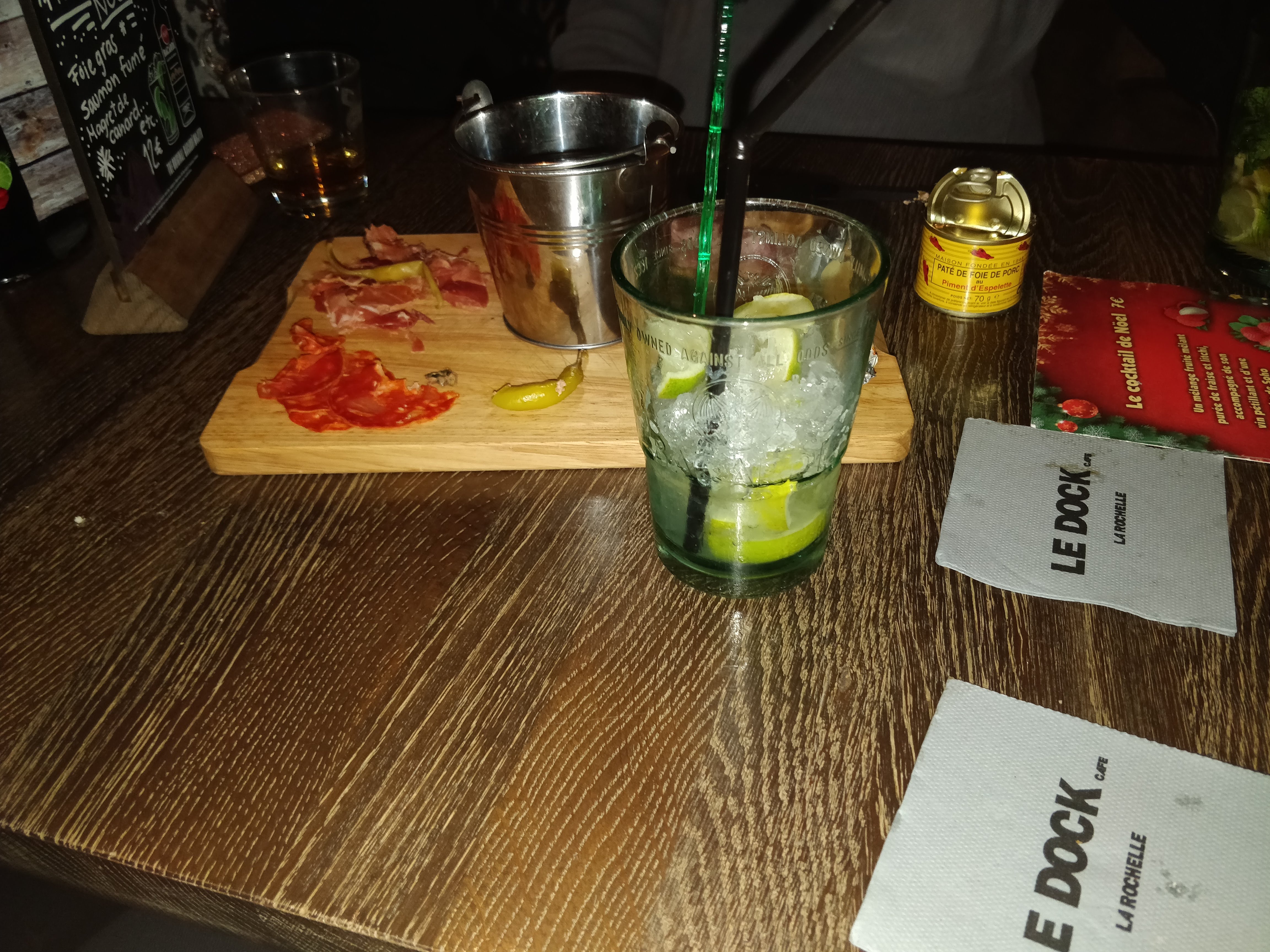 Posté le 06/10/2019 à 09:44"Cocktail très bon et petit plateau de charcuterie pour accompagner la boisson très bon, attention au piment 😉"