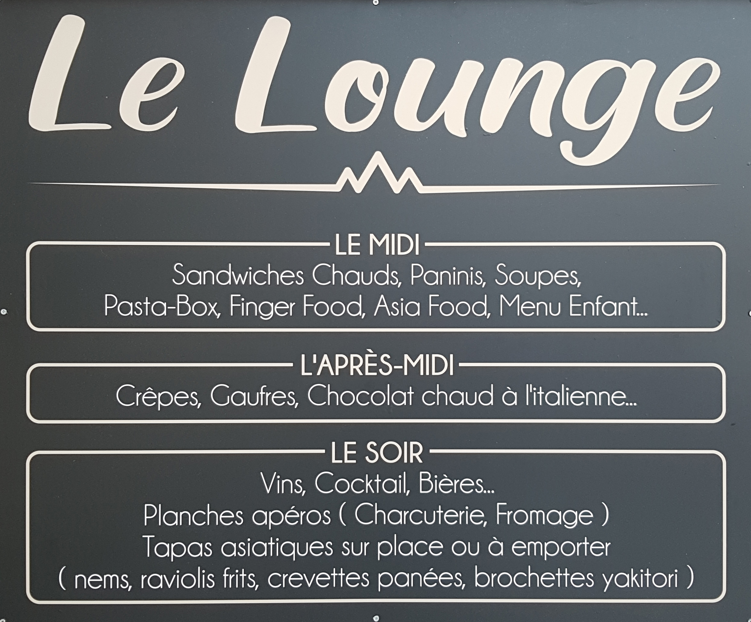 Posté le 29/12/2019 à 17:18"La bonne adresse pour le repas du midi. Il y a toute sorte de petits plats, je recommande la tartine des montagnes. Super accueil, service rapide, tables ou chaises longues au soleil, Le bon endroit pour déjeuner à moindre frais."