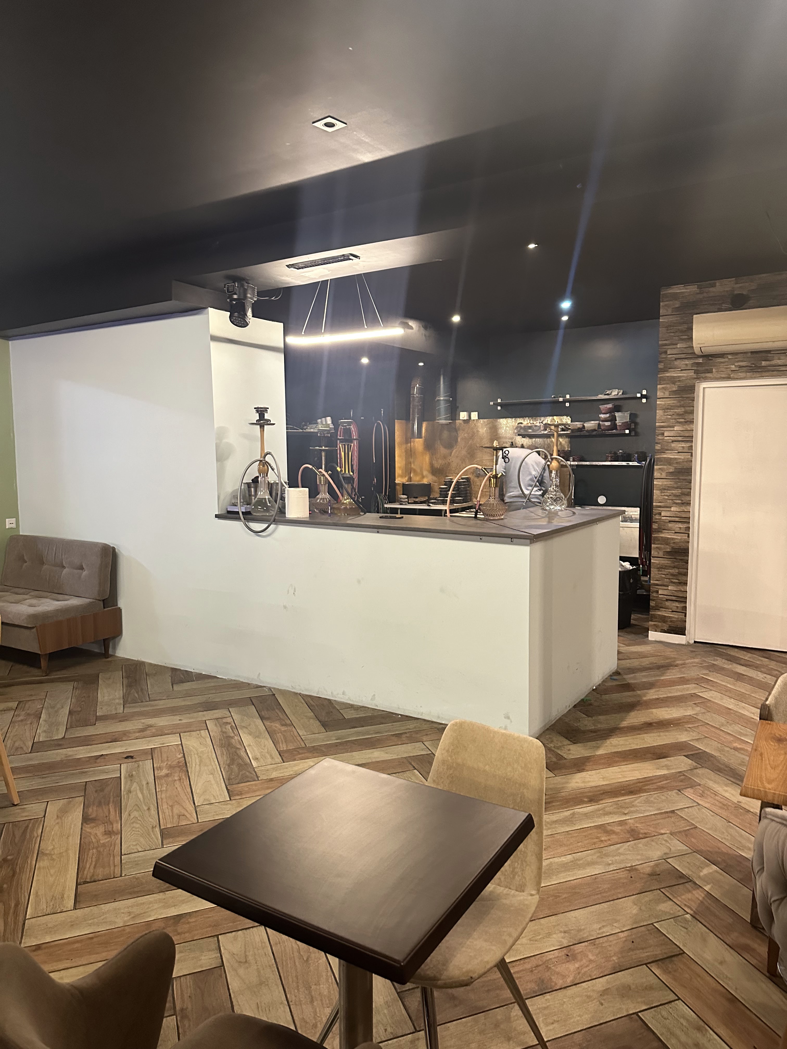 En semaine relativement calme, personnel rapide et sympa, on peut y manger, boire, fumer une chicha tout ça a table ou en petit salon, week-end festif, manque la terrasse qui est fermée mais le lieu reste cosi pour une simple soirée posée entre amis.