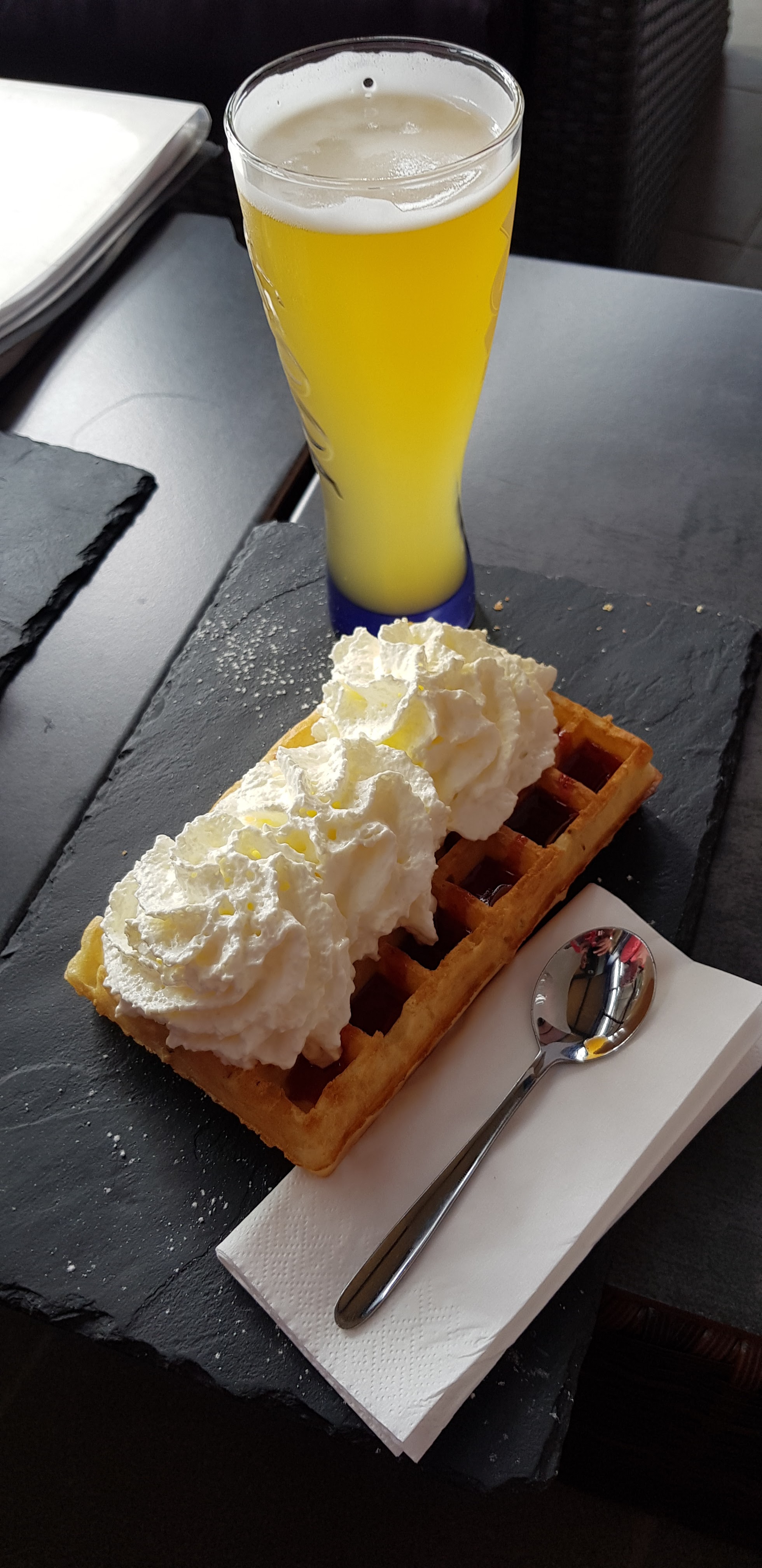 Bonne accueil avec un service rapide. Très bonne gaufre + une vu incroyable sur le lac. Je vous le recommande !!
