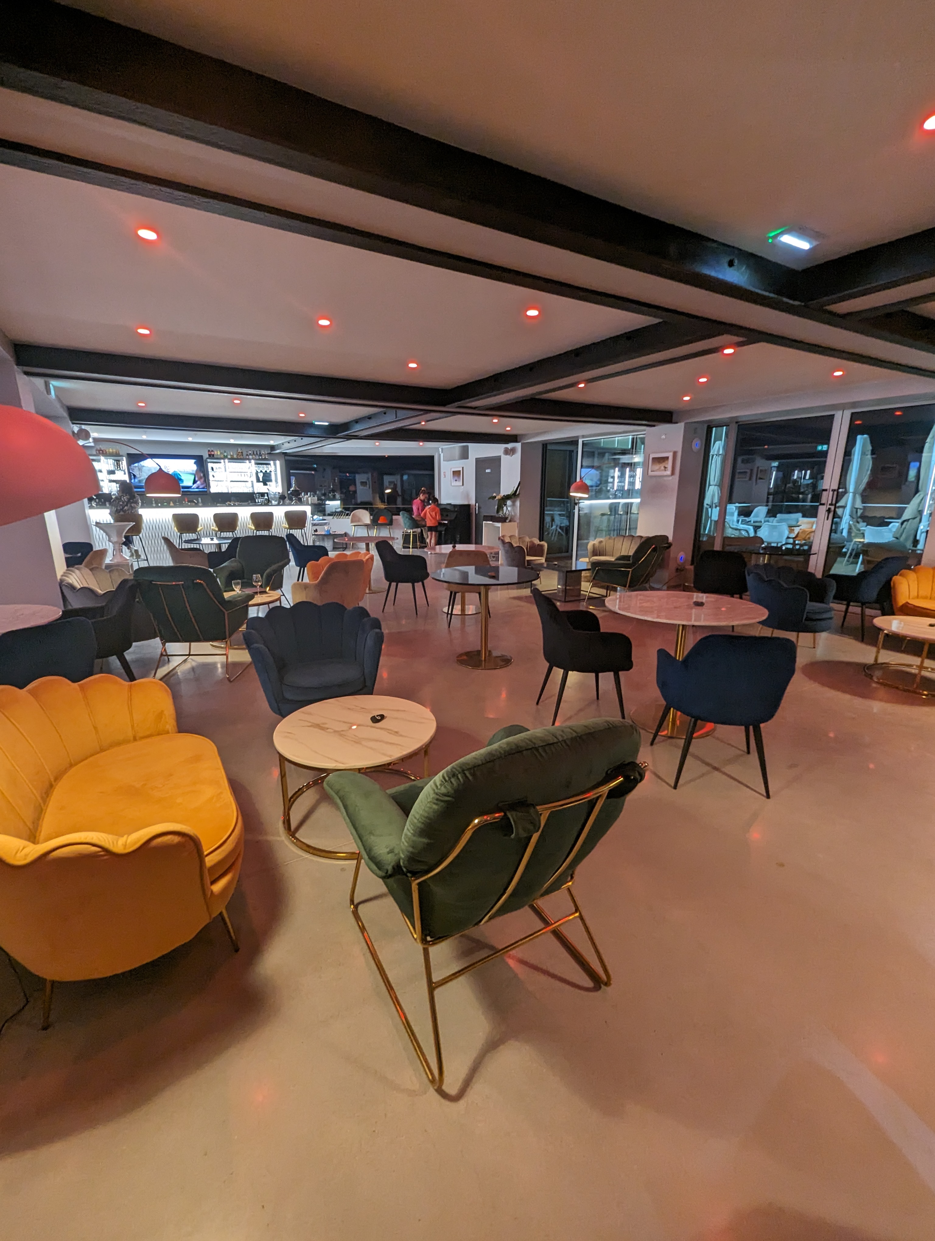 La déco, l’espace manquent de chaleur sans la vue de l’Océan ce bar à ambiance serait bien triste!!!