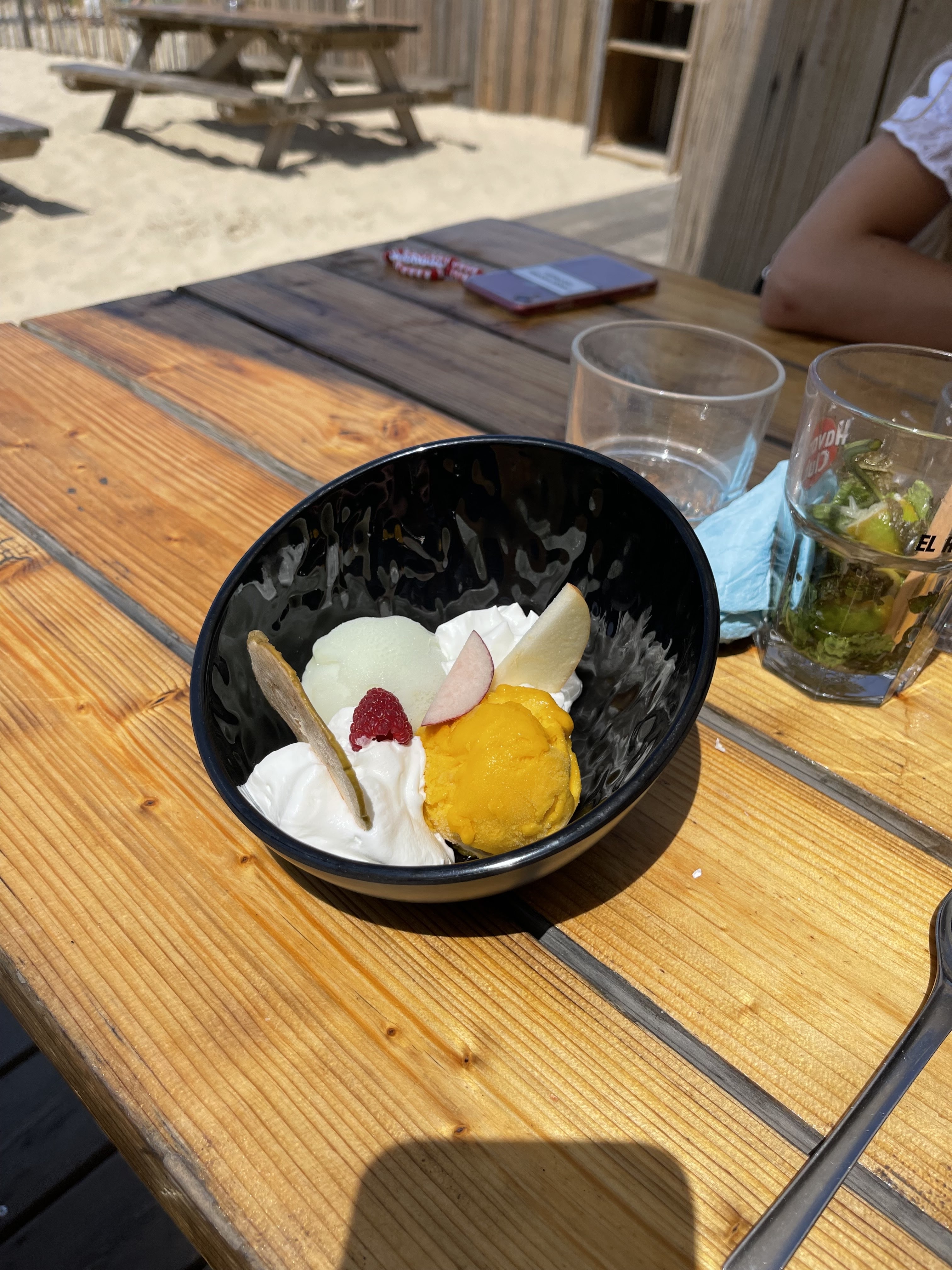 Très bel endroit les pieds dans le sable, musique d'ambiance parfaite niveau sonore. Par contre le service a été très long.