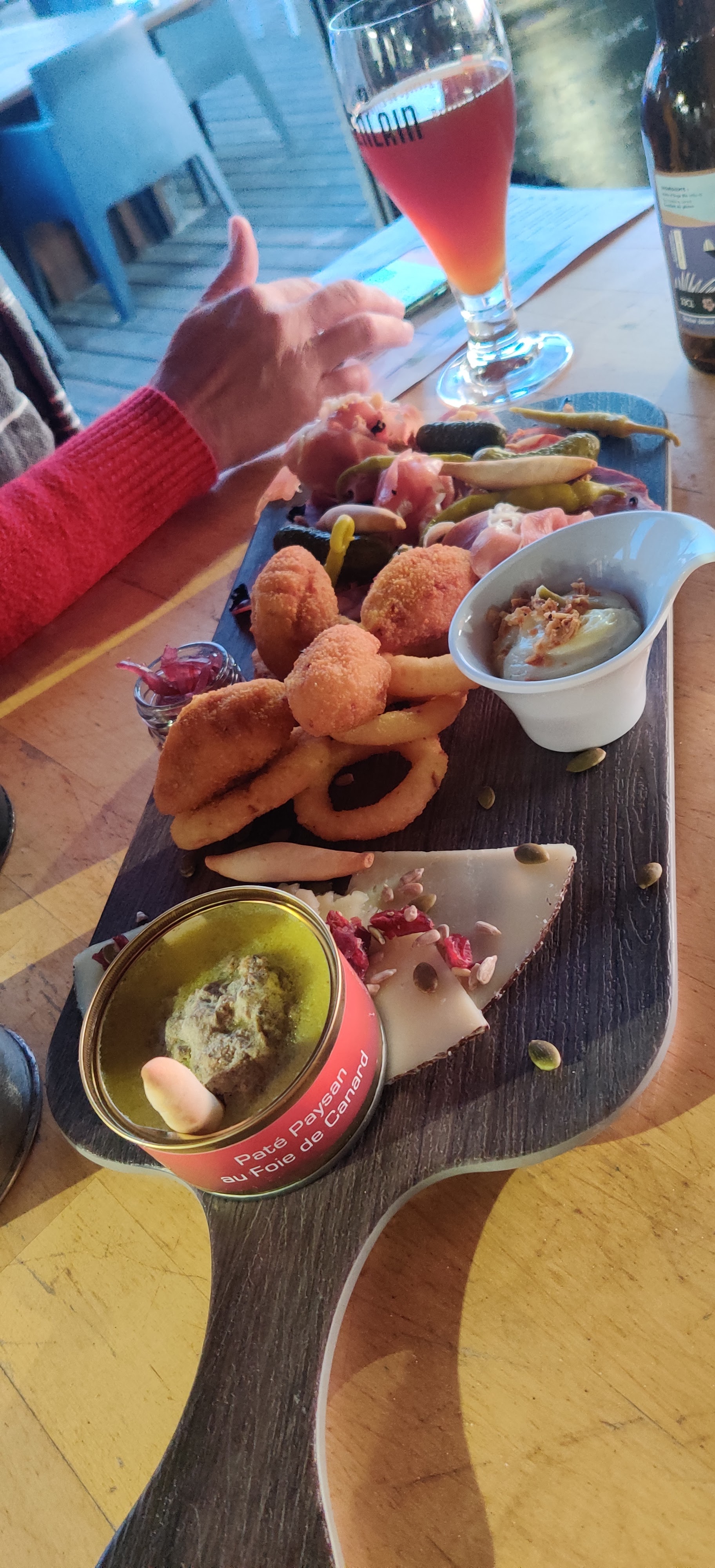 Très belle endroit pour y prendre un verre ainsi que des tapas . Pour ce qui est d’y mangé nous avons été particulièrement déçu nous avons attendu un moment avant d’avoir la carte avec d’ailleurs une partie de la carte est du jour donc à lire sur une ardoise écrit à la craie qui est presque incompréhensible. Ensuite nous avons pris des gambas qui est pas préciser mais elles ne sont pas décortiquées et en plus il y avais plus de rince doigts mais on nous l’a annoncé que en fin de repas à notre demande d’un rince doigts donc pour l’apéro c’est bien pour manger un peu moins bien .la brioche perdu je conseille !