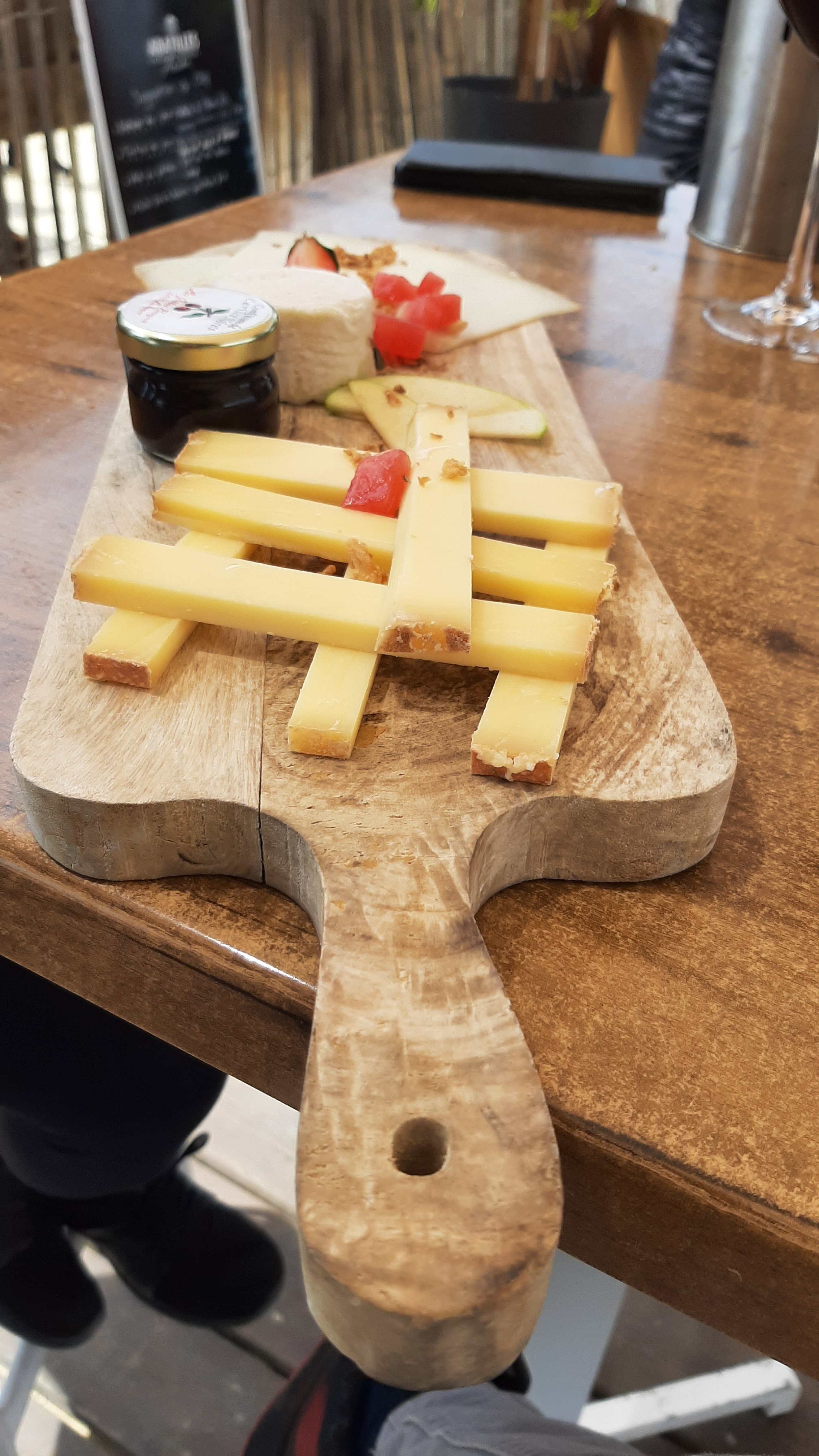 Lieu super agréable néanmoins le staff semble désorienté.aucun accueil à notre arrivée. Frites en supplement du burger, tarifs assez cher mais le lieu se paye. Planches fraîches et très bonne de part la qualité et fraîcheur sûrement car produit local. Lorsque le dessert arrivé, pour 4 personnes seulement 3 couteaux sont donnés et la serveuse nous dira qu'il y en a plus. Une autre serveuse nous en redonnera après réclamation. Celui ci sera quand même tombé par terre. Attitude plus qu' incorrecte digne d'un fast fois, et encore . ..