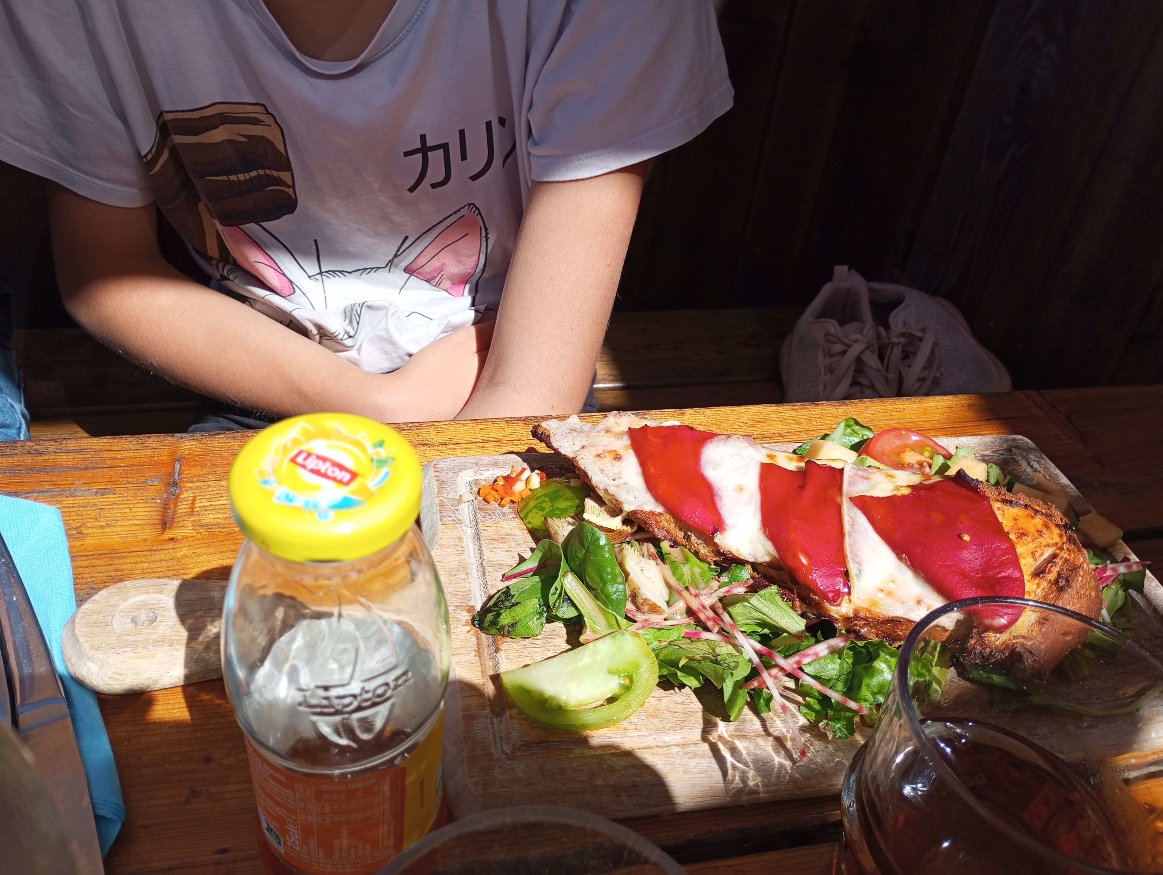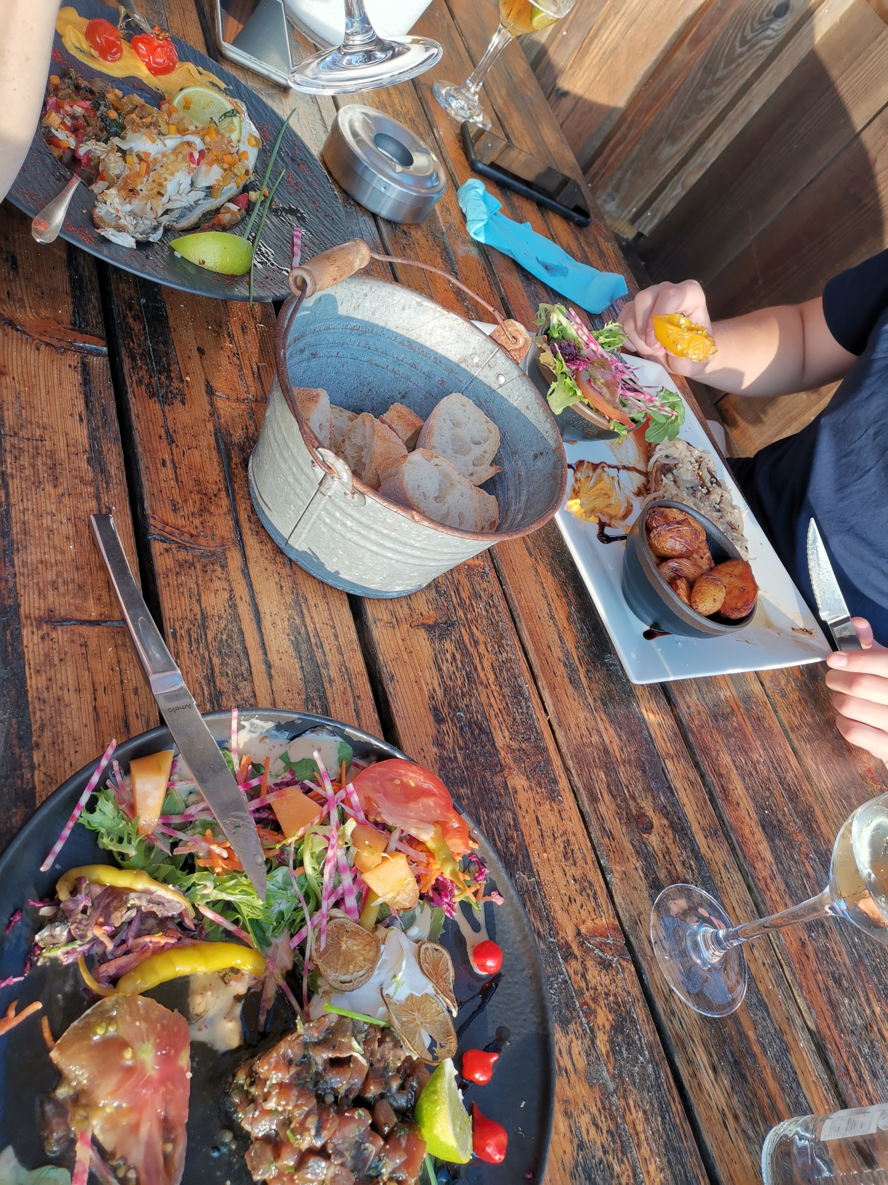 Le déjeuner (ou l'apéro) avec la vue. Equipe super sympa ! Et bons petits plats bien fournis, tout ce que l'on aime.